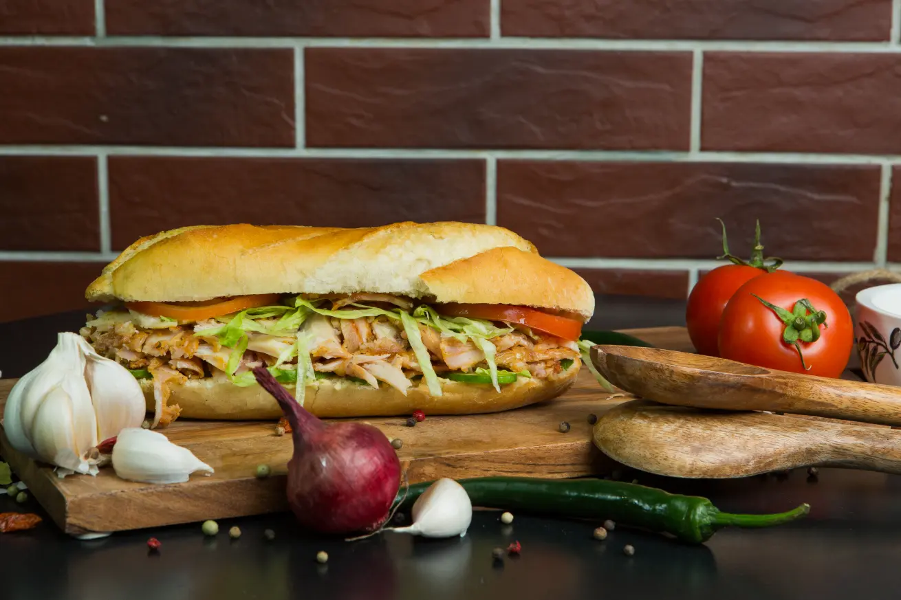 PAINE BAGHETĂ* 100GR, CARNE DE PUI PREPARATĂ* 80 GR ,